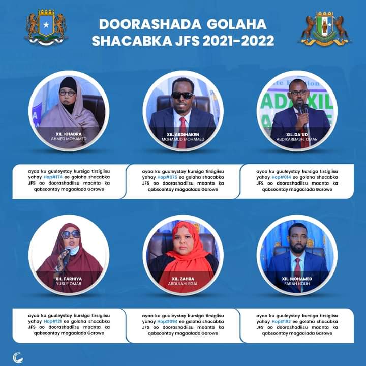 Doorashada ayaa waxaa meesha laga saaray dhamaan Xildhibaannadii horay ugu fadhiyay kuraastaas, waxaana Maanta ku tartamay oo kusoo baxay Xildhibaano cusub, waxaana kuraasta Maanta la doortay ay kala yihiin.