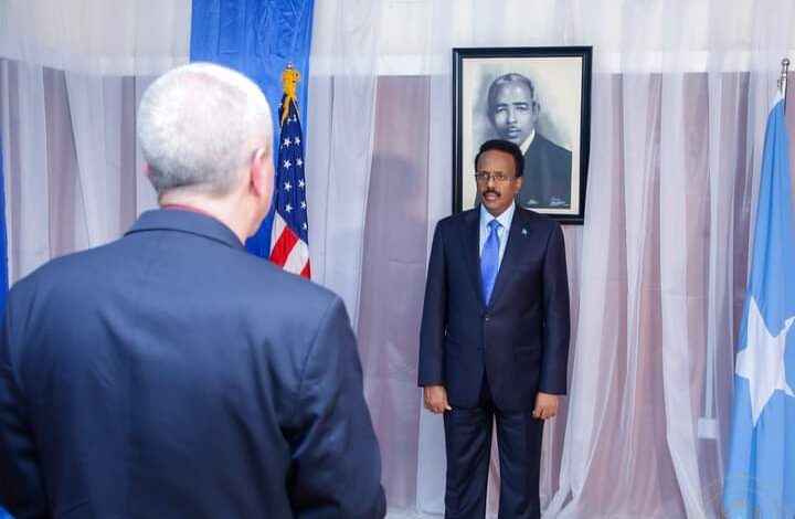Madaxweynaha Soomaaliya, Maxamed Cabdullaahi Farmaajo ayaa warqadaha aqoonsiga danjirenimo ka guddoomay Safiirka Cusub ee Dowladda Maraykanku u soo magacawday Soomaaliya Mudane Larry André.