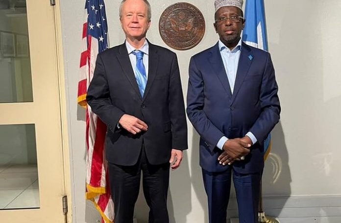Qoraalka ayaa lagu yiri ““Waxaan maanta xarunta Safaaradda dowladda Mareykanka ( USA ) kula kulmay Safiirka cusub Mudane Larry’ Andre, Waxaan ka wada hadalnay xaaladda dalka, dhameystirka doorashooyinka caqabadaha hortaagan iyo Amniga, Waxaan uga mahad celiyay taageerada dowladda Mareykanka ( USA ) ku bixiso dhismaha nabadda iyo geedi socodka dimuqraadiyadda Soomaaliya.”