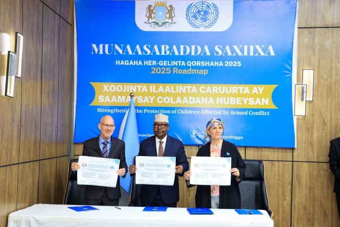 Dowladda Federaalka Soomaaliya iyo Qaramada Midoobay ayaa maanta si rasmi ah u kala saxiixday Hagaha Hirgelinta Road Map ka ee 2025, kaas oo lagu xoojinayo ilaalinta carruurta ay saameeyeen colaadaha hubeysan.