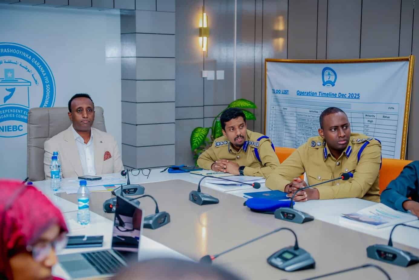 Kulankan, oo diiradda lagu saaray diyaargarowga iyo sugidda amniga doorashooyinka, waxaa ka qayb galay Guddoomiyaha Guddiga Doorashooyinka Madaxa-bannaan ee Qaranka, Taliyaha Ciidanka Booliska Soomaaliyeed, Taliyaha Ciidanka Booliska Gobolka Banaadir Gaashaanle Sare Mahdi Cumar Muumin, iyo saraakiil kale oo ka socday hay’adaha amniga caasimadda.