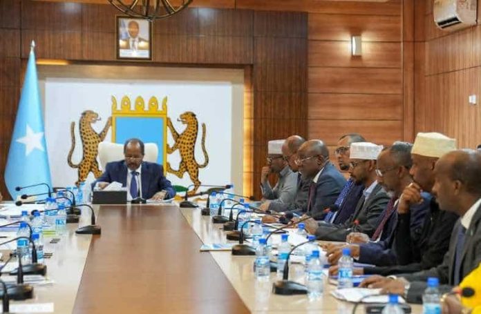 Madaxweynaha Soomaaliya, Xasan Sheekh Maxamuud, ayaa haatan guddoominaya shir aan caadi ahayn ee Golaha Wasiirrada XFS ah, kaas oo ka furmay magaalada Muqdisho.