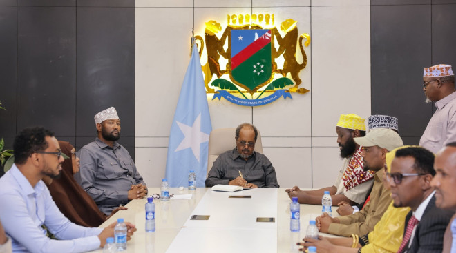 Madaxweynaha Soomaaliya, Xasan Sheekh Maxamuud, ayaa maanta kulan muhiim ah la yeeshay Odayaasha Dhaqanka ee Dowlad Goboleedka Koonfur Galbeed, xilli uu ku sugan yahay magaalada Baydhabo.
