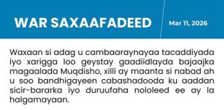Aqalka sare oo si diiran u soo dhoweeyay War murtiyeedka Shirka...