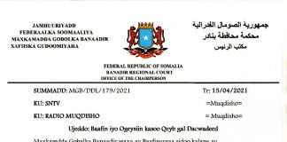 Maxkamada G/Banaadir oo u yeertay eedeysanayaan loo haysto faafinta xogaha amniga...