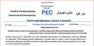 Golaha waxbarashada gaarka ah oo baaq u diray maamulka G/Banaadir