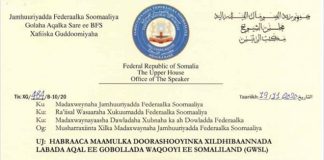 Aqalka sare oo si diiran u soo dhoweeyay War murtiyeedka Shirka...