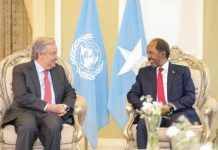 Madaxweynaha Jamhuuriyadda Federaalka Soomaaliya Xasan Sheekh Maxamuud ayaa kulan miro-dhal ah kula qaatay Qasriga Madaxtooyada Xoghayaha Guud ee Qaramada Midoobey António Guterres oo booqasho...