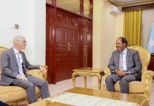 Madaxweyne Xasan Sheekh oo kulan sagootin ah u sameeyay Amb James Swan