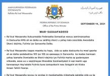 Qoraal uu bartiisa twitter-ka ku baahiyay Wasiirka Wasaaradda Arrimaha Dibadda ee dalka Jabuuti Mahamoud Ali Youssouf, ayaa wuxuu ku beeniyay wararka sheegaya in xaaladda...