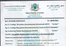 Madaxweynaha Hirshabeelle, Cali Xuseen Guudlaawe ayaa maanta soo saaray Liiska Musharixiinta ku tartamaya 8 kursi ee maamulkaasi ku matali doona Aqalka Sare.